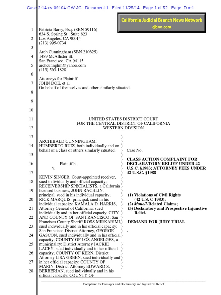 Class Action Complaint for Declaratory Relief Under 42 USC 1983