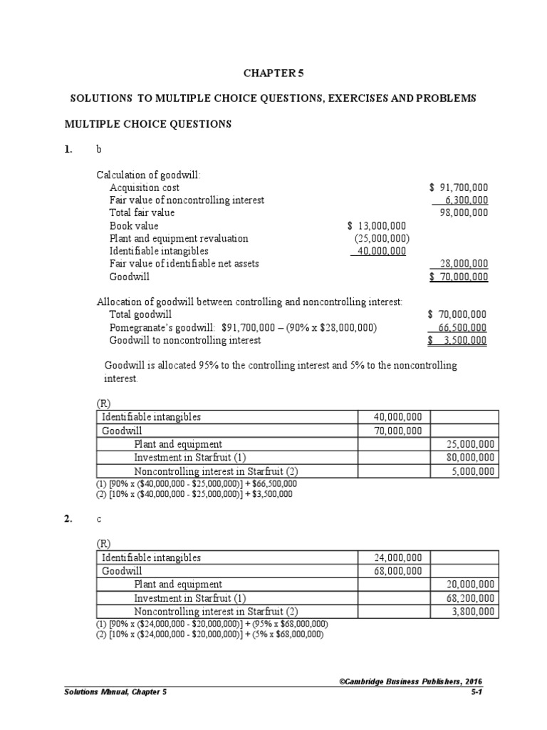 Ch 5 Answers to Homework Assignments (1) Goodwill (Accounting) Book