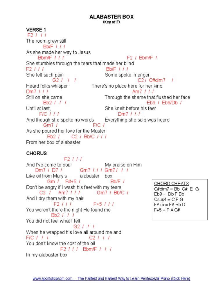 This song was arranged by erik foster / daniel galbraith in the key of f, gb. Web download the sheet music for alabaster box by cece winans, from the album believe for it (deluxe). Download and print alabaster box sheet music for piano, vocal & guitar chords. 2 parts • 9 pages • 03:58 • aug 23, 2021 • 696.