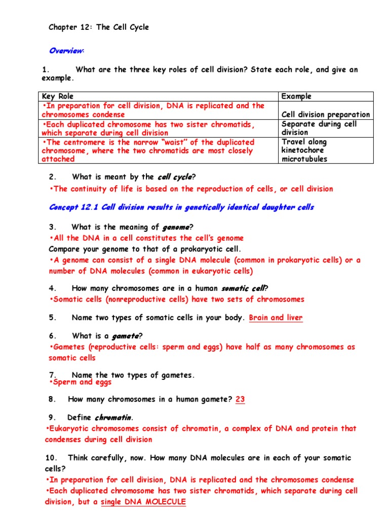 the cell cycle worksheet answers