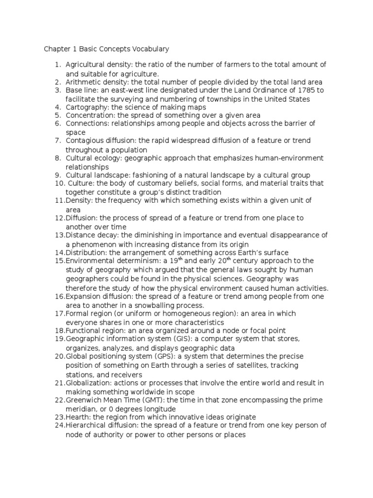 AP Human Geography Chapter 1 Basic Concepts Vocabulary PDF
