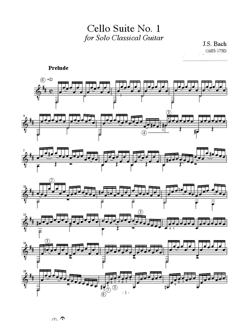 Bach Cello Suite 1 for Guitar Suite (Musique) Pièces instrumentales