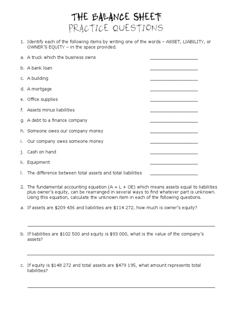 balance sheet practice worksheet with answers