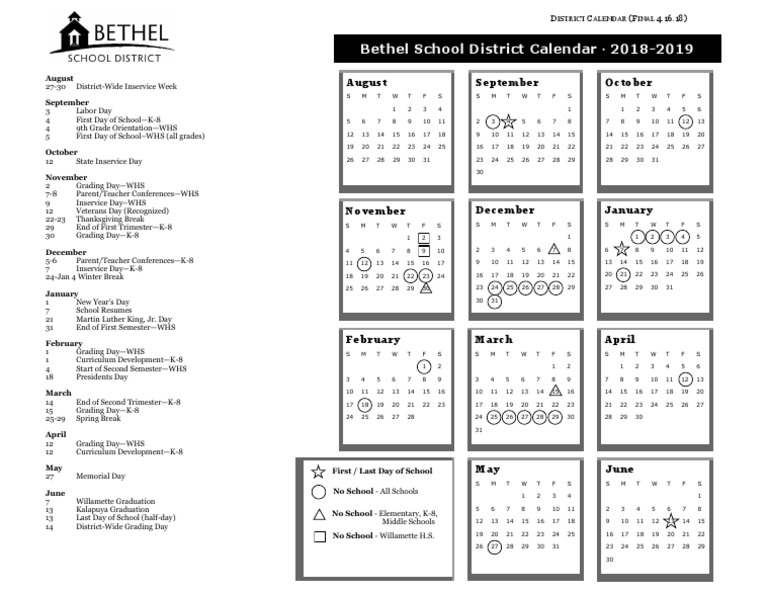 Bethel Schools 20182019 Calendar PDF Academic Term Change