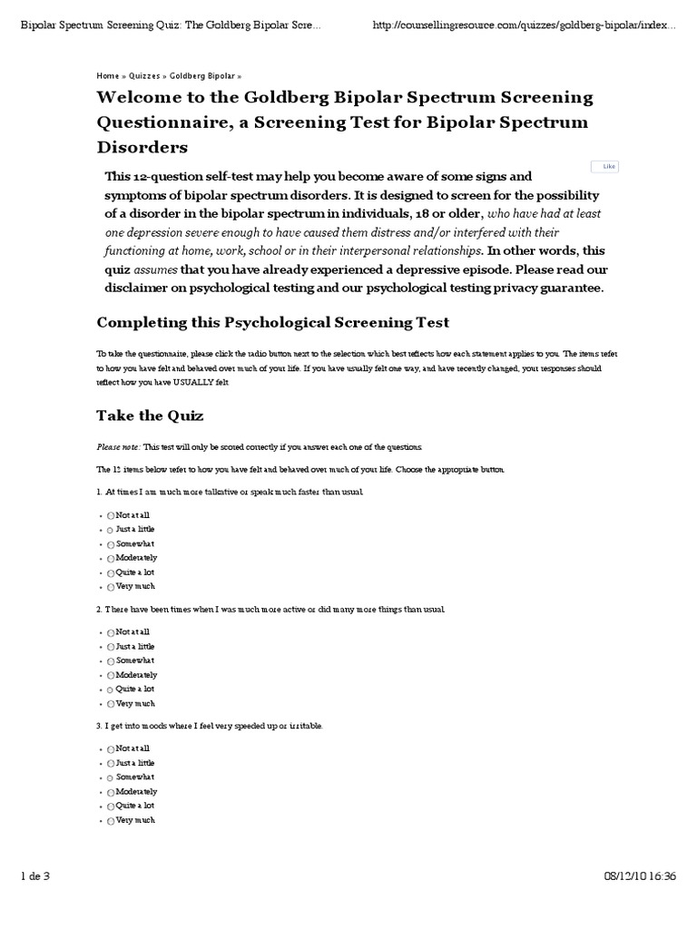 Bipolar Spectrum Screening Quiz The Goldberg Bipolar Screening
