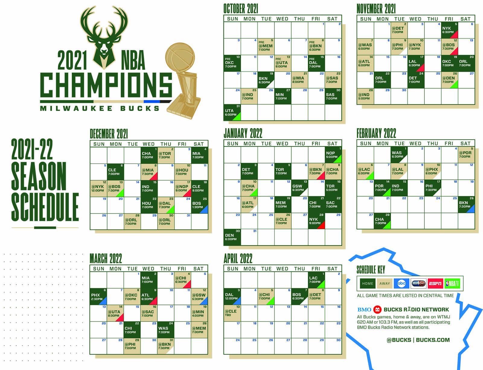 Here is the world champion Milwaukee Bucks' 202122 regular season schedule