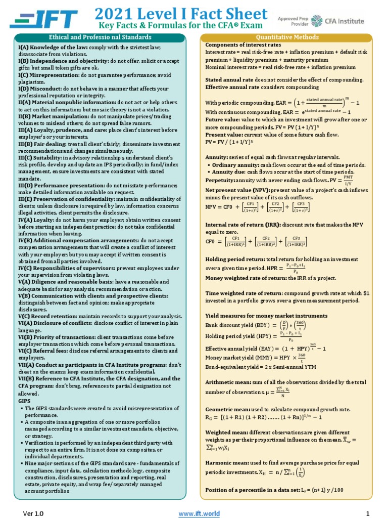 IFT CFA Level I Facts and Formula Sheet 2021 v1.0 PDF Net Present