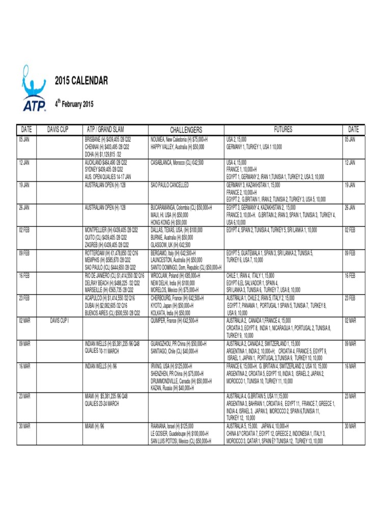 ATP Challenger Tour Calendar 2015 4 Feb Tennis Tournaments Sports
