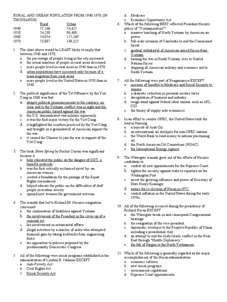 AP U.S. Unit 8 Exam + Answers Richard Nixon Vietnam War