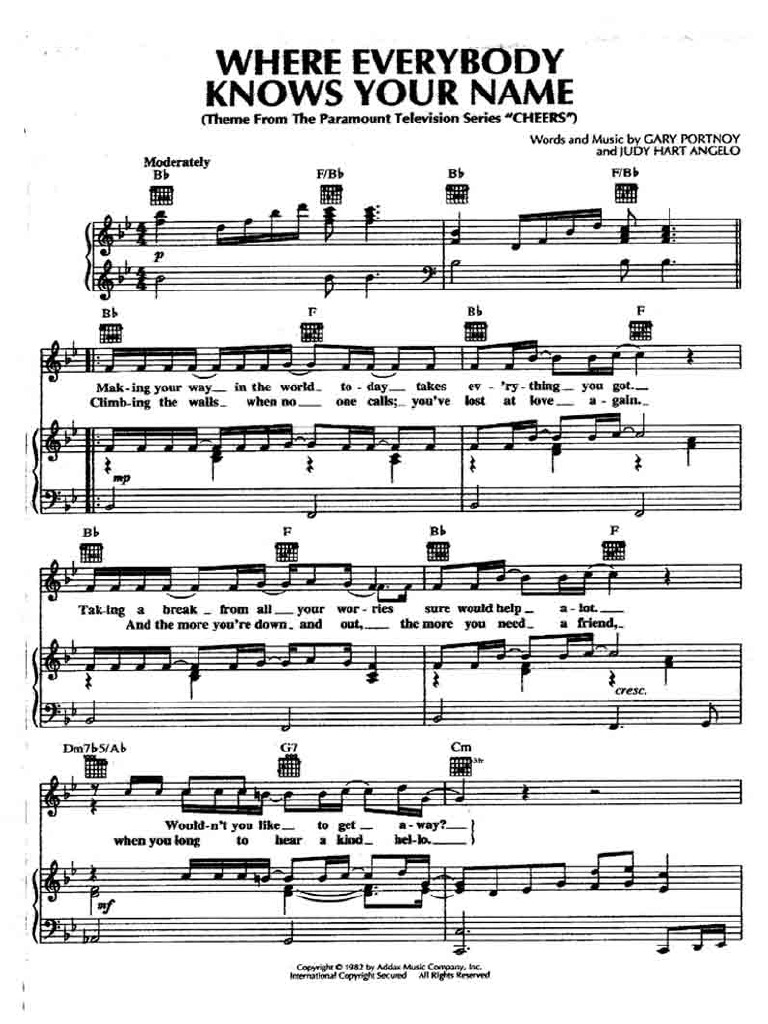 Cheers Theme Song Sheet Music - Web 11 rows where everybody knows your name theme from the paramount television series cheers (arr. 1 part • 1 page • 00:51 • mar 06, 2022 • 84 views.