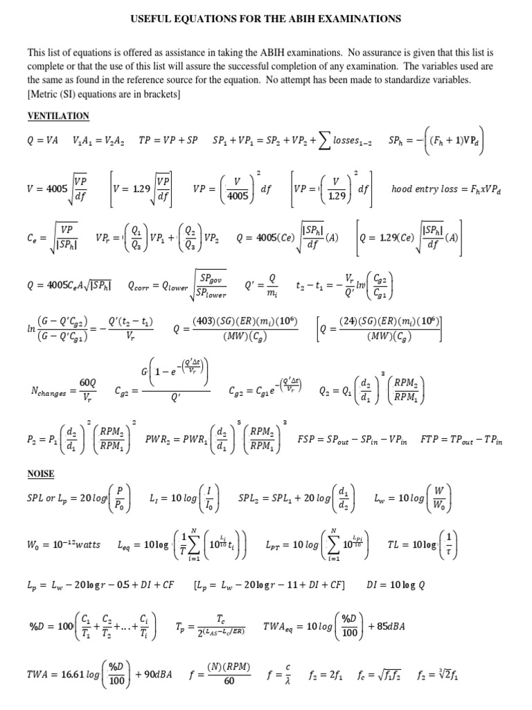 Cih Exam Equation Sheet - During the examination, the equations and. Web the bgc offers a list of equations as guidance for cih examinations.
