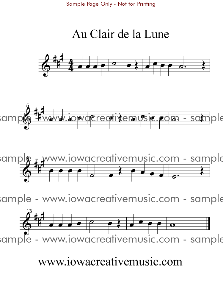 Piano Sheet Music Au clair de la lune (By the Light of the Moon