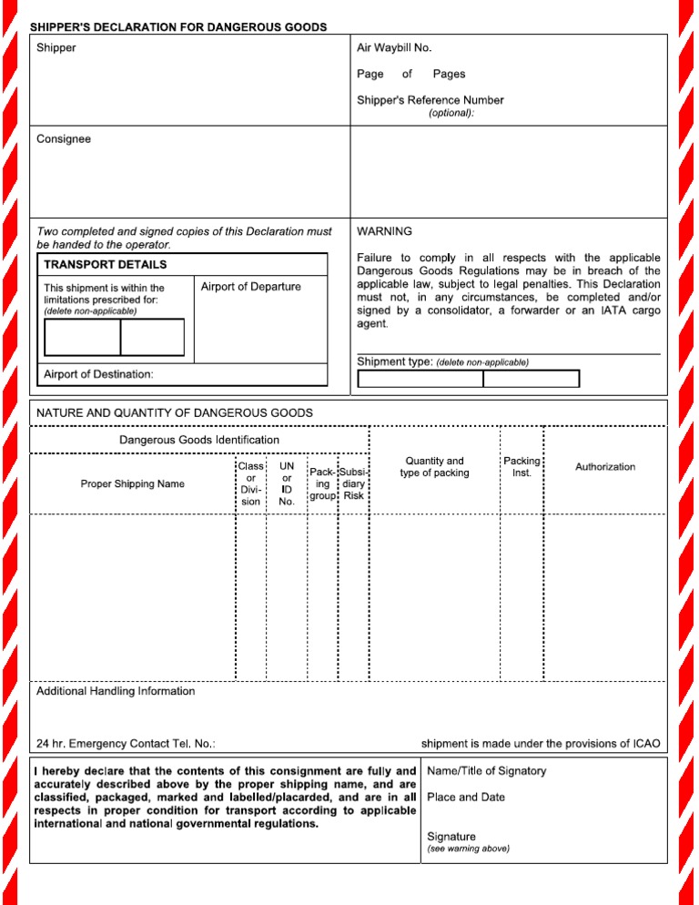 Shippers Declaration For Dangerous Goods DHHR Dangerous goods, Air