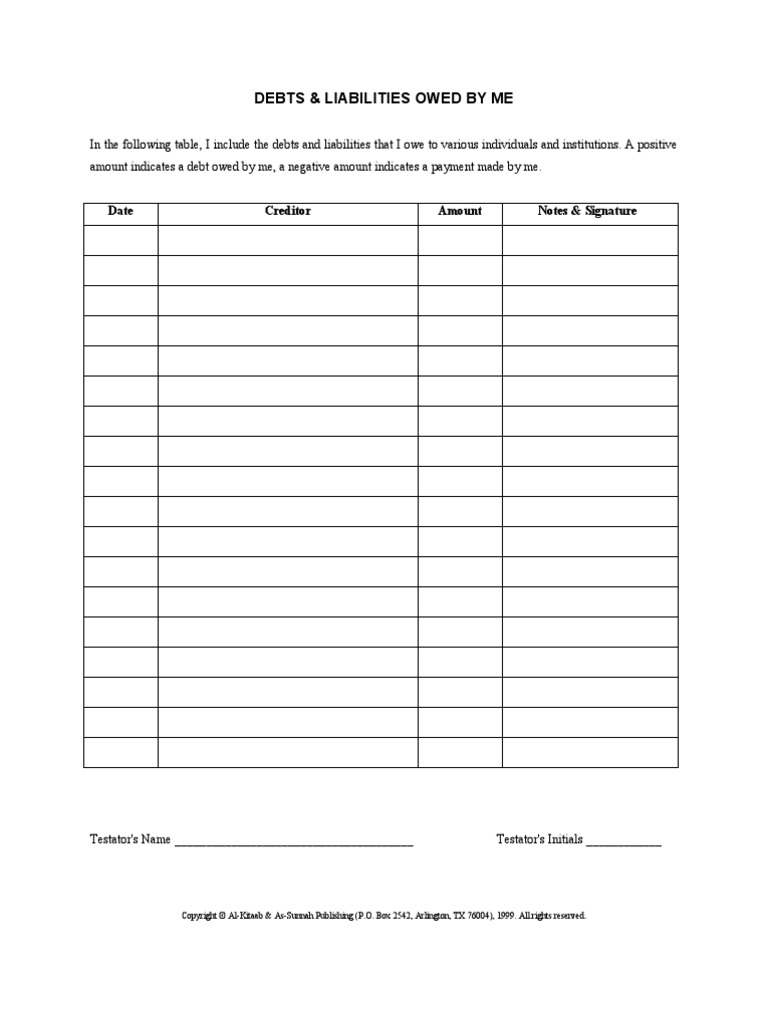 Debts Owed Form