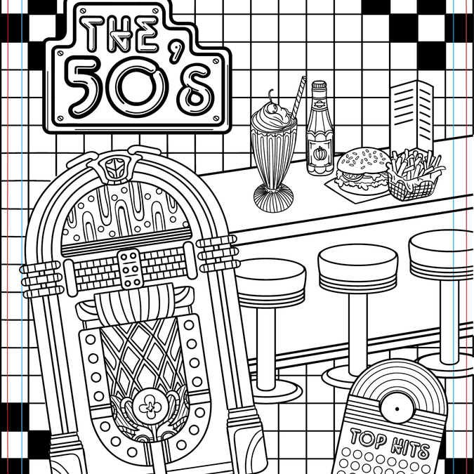 Coloring book for adults Color the decades 50's2000 Illustration or