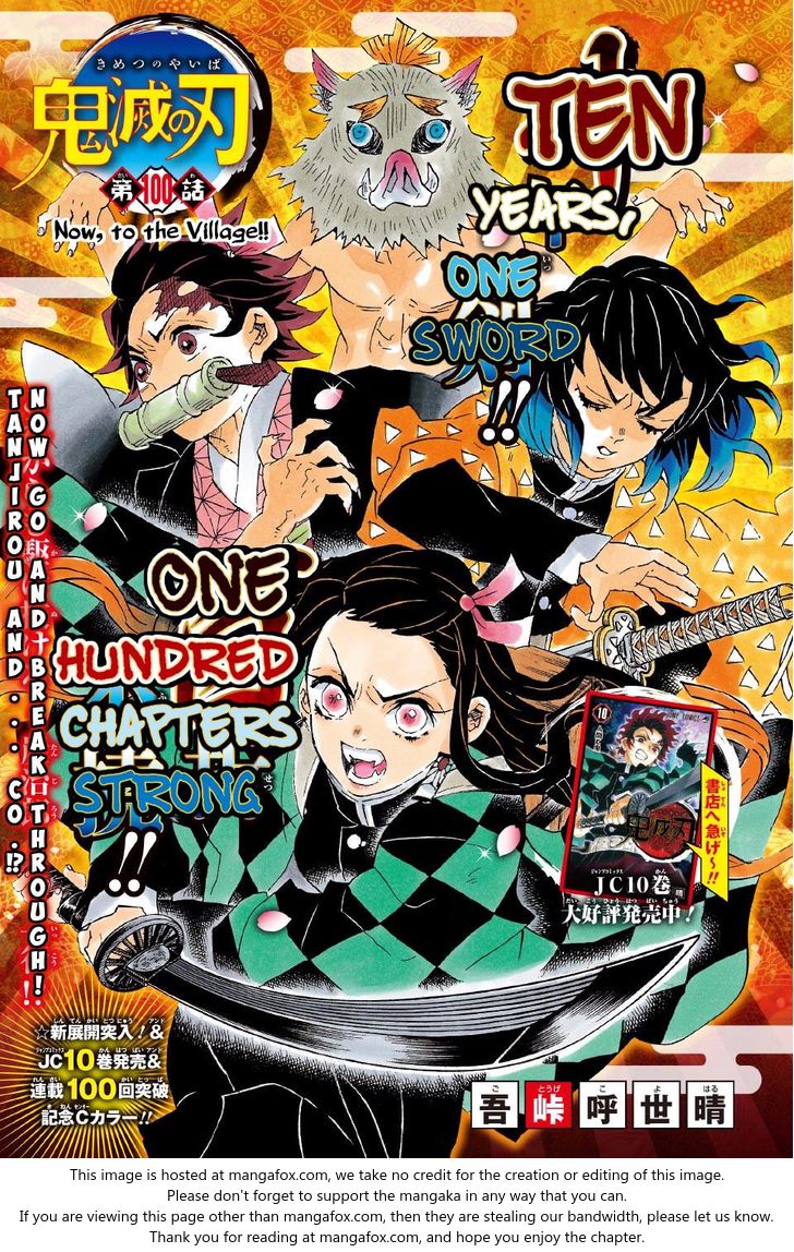Demon slayer chapter 100 go to the village! Two months have passed since the end of the battle at yoshiwara, tokyo and tanjiro kamado has been unable to. You're reading demon slayer chapter 100. Legend has it that a demon slayer. Kimetsuscans no yaiba, chapter 205.5: