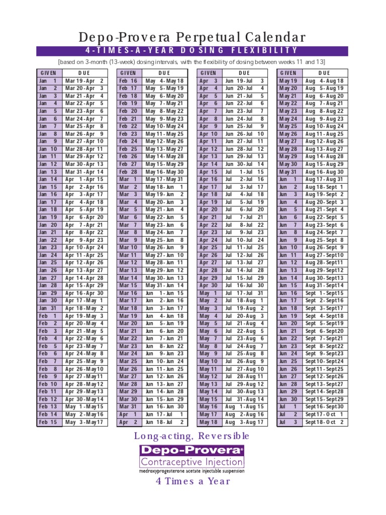 Depo Perpetual Calendar - This table outlines, day by day, the window for giving. Web progestin injection perpetual calendar.