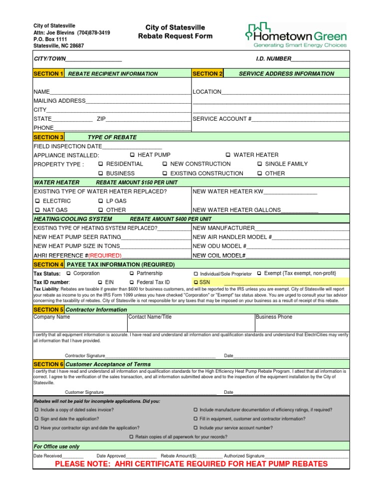 Rebate Form CityofStatesville (Revised 82809) Rebate (Marketing