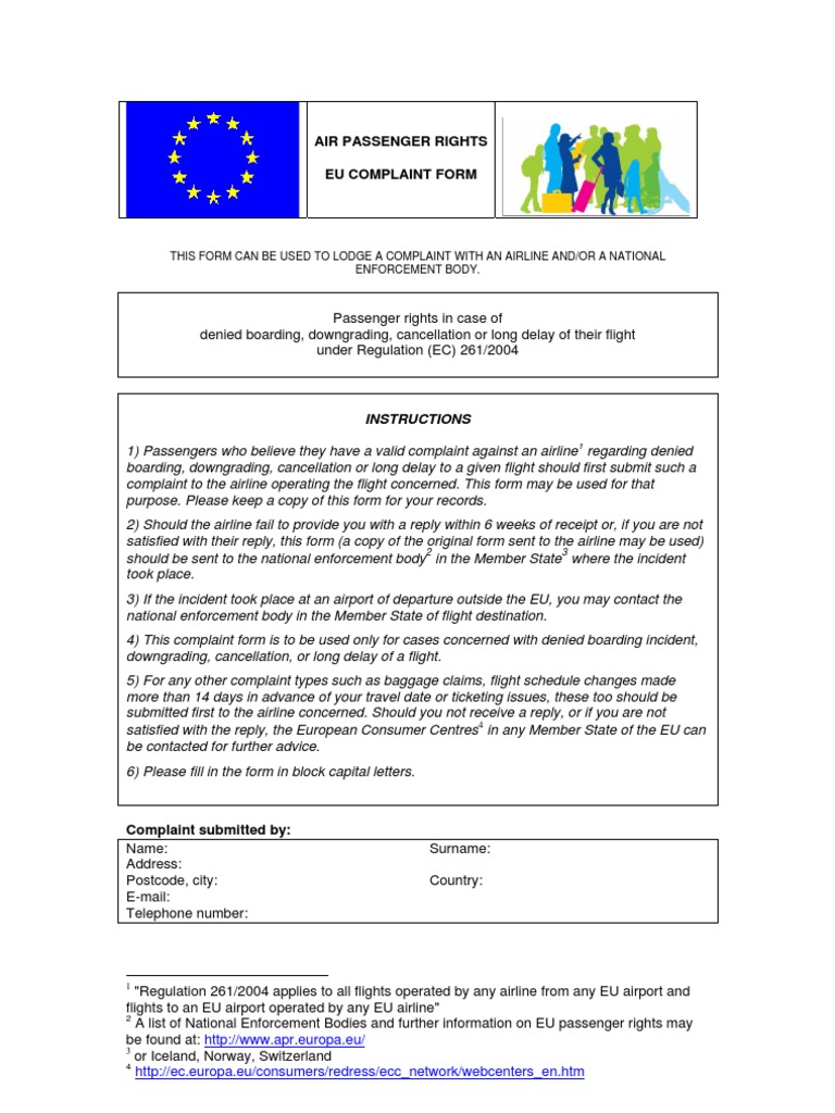 Web you can lodge a complaint with the european commission. Enjoy smart fillable fields and interactivity. It does not apply to flights arriving in eu from outside. Web how to complain regulation 261/2004 applies to all flights within the eu, and flights to the eu by any eu airline. You can also download it, export it or print it out.