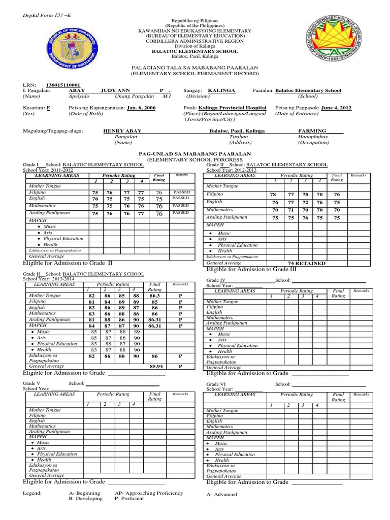 DepEd Form 137A
