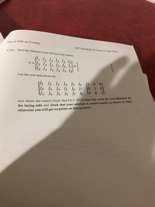 Solved Find the Hermite form HF(A)of the matrix A = [J_1