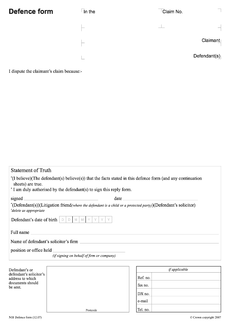 N11 Defence form