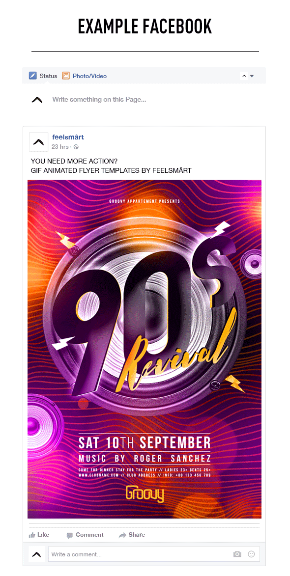 Scream & Shout Flyer Template + GIF Animation Action by feelsmart