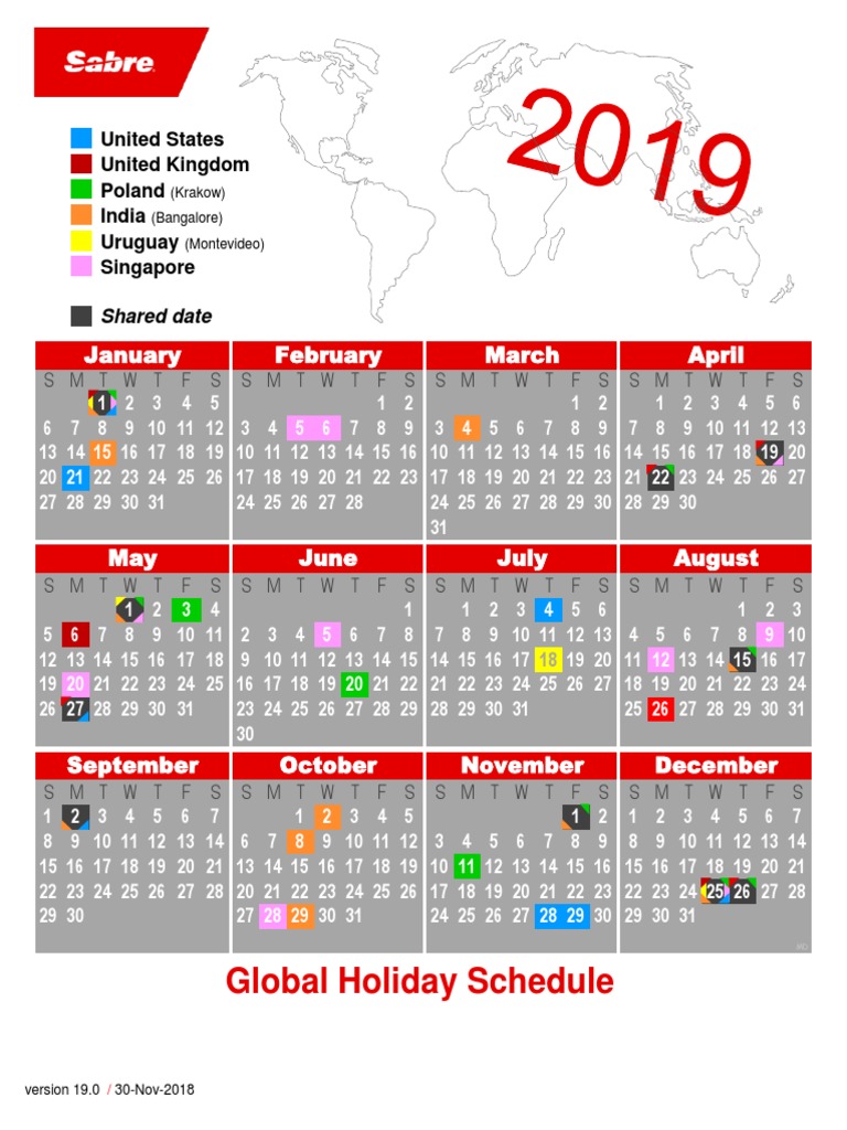 2019 Sabre Global Holiday Wall Calendar PDF Public Holiday