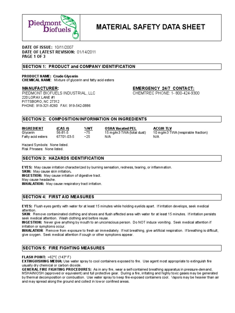 Glycerin Safety Data Sheet PDF Toxicity Firefighting