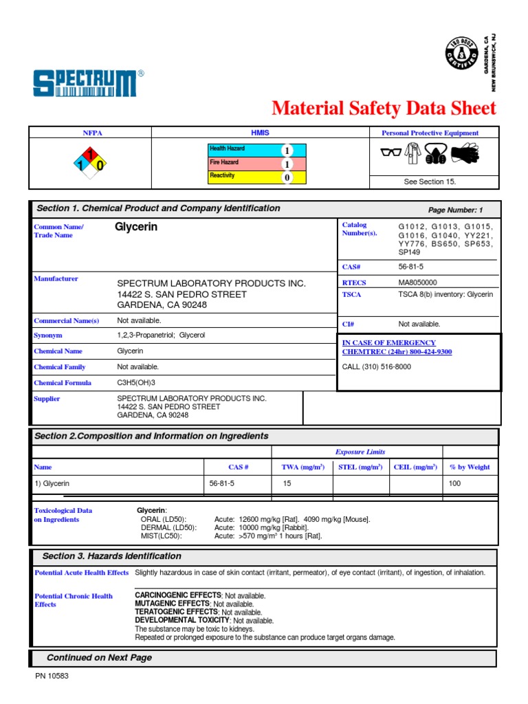 Glycerin Safety Data Sheet - Us osha hazard communication standard. Web safety data sheet this safety data sheet was created pursuant to the requirements of: