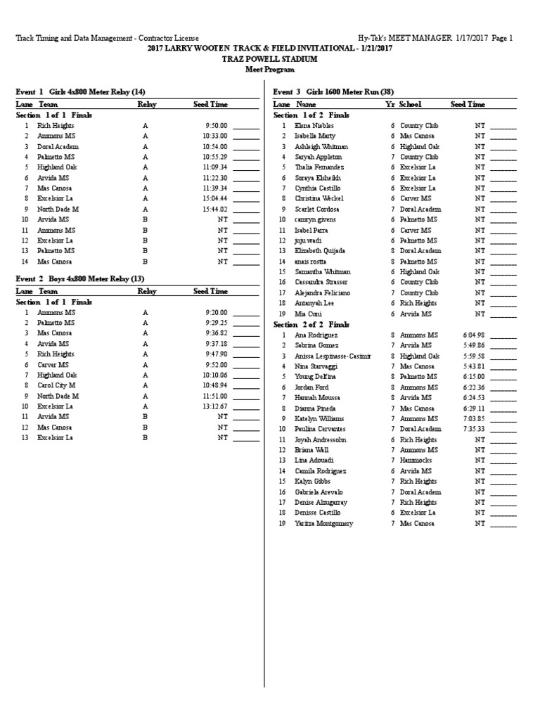 Larry Wooten Invitational Heat Sheets PDF Summer Olympic Games