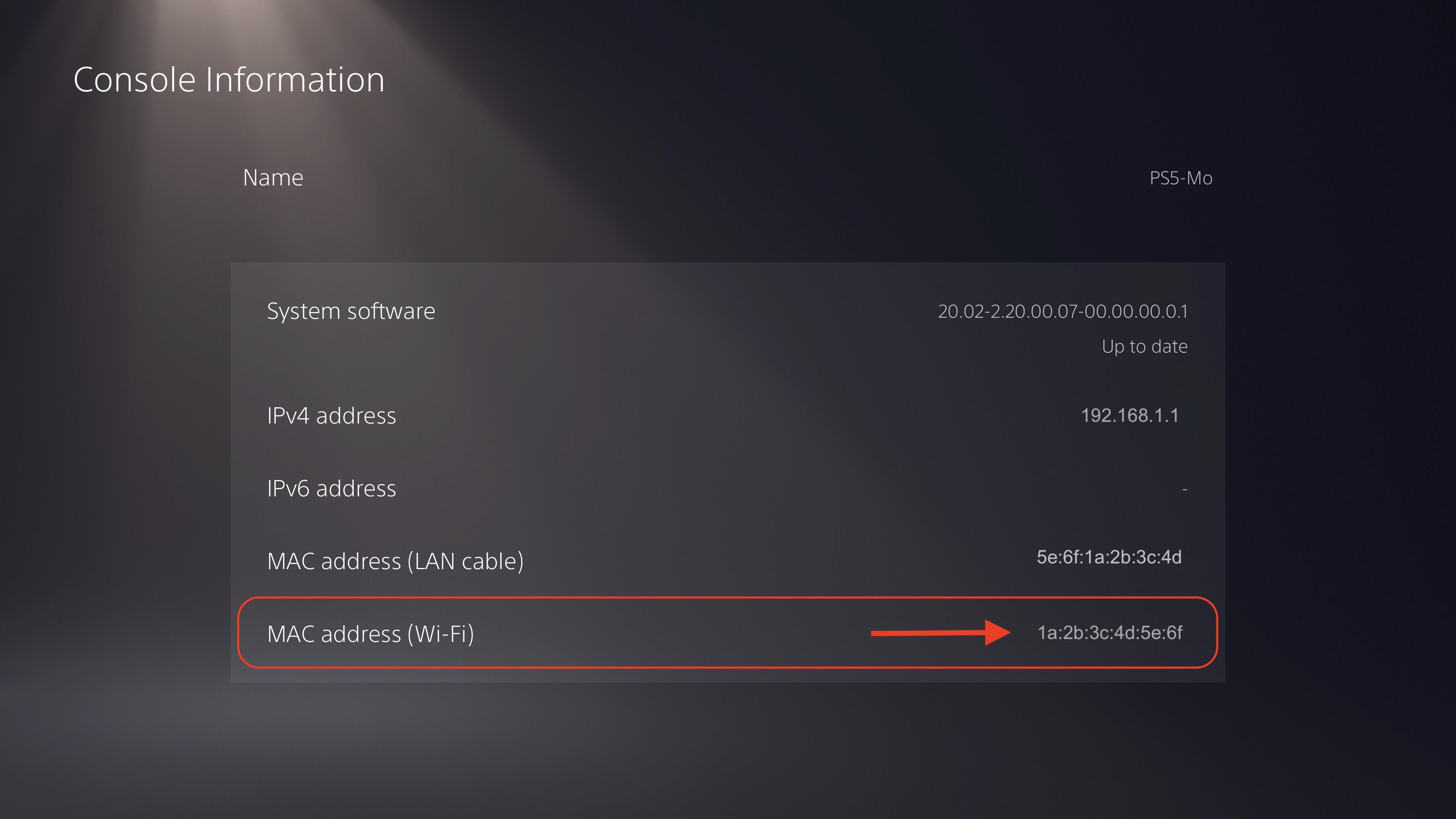 How do I find the MAC address for my Playstation 5 (PS5)?