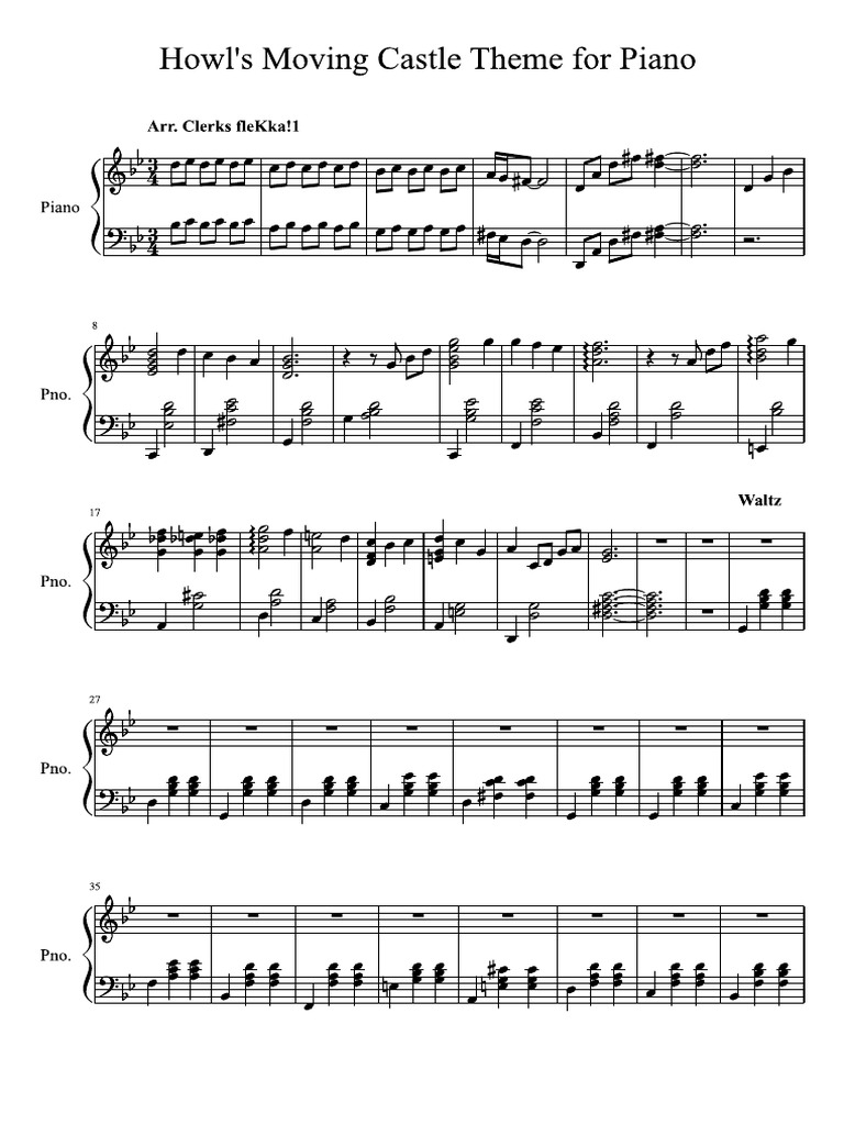 Howls Moving Castle 2 0 sheet music for Piano download free in PDF or MIDI