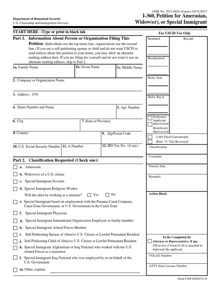 I 360 Immigration Form - Web this is the section 1059 program. Government changed the siv process. Expires 11/30/09 read these instructions carefully to properly complete. 1, 2023, but may continue to use the 2019 version of the form through oct. 02/12/07) y page 2 copies of evidence that your spouse was a u.s. Citizenship and immigration services (uscis). Citizenship and immigration services (uscis) know that they were married to a u.s. Citizenship and immigration services (uscis) provides for foreign nationals wishing to begin the green card (lawful permanent residence). Immigration benefits for noncitizen crime victims t visa for victims of human trafficking. However, they must not have been legally separated or divorced from the us.