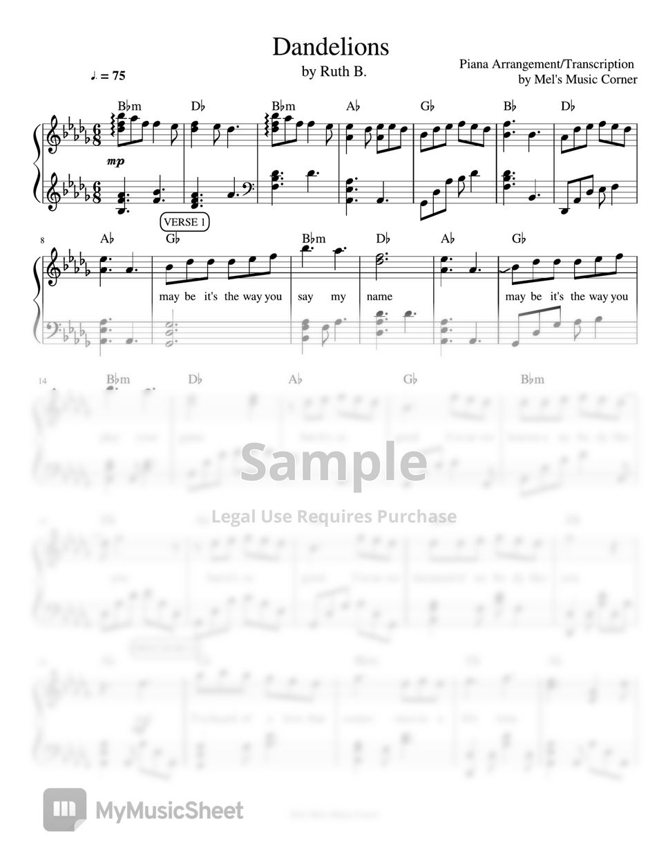 Ruth B. Dandelions (piano sheet music) Sheets by Mel Music Corner