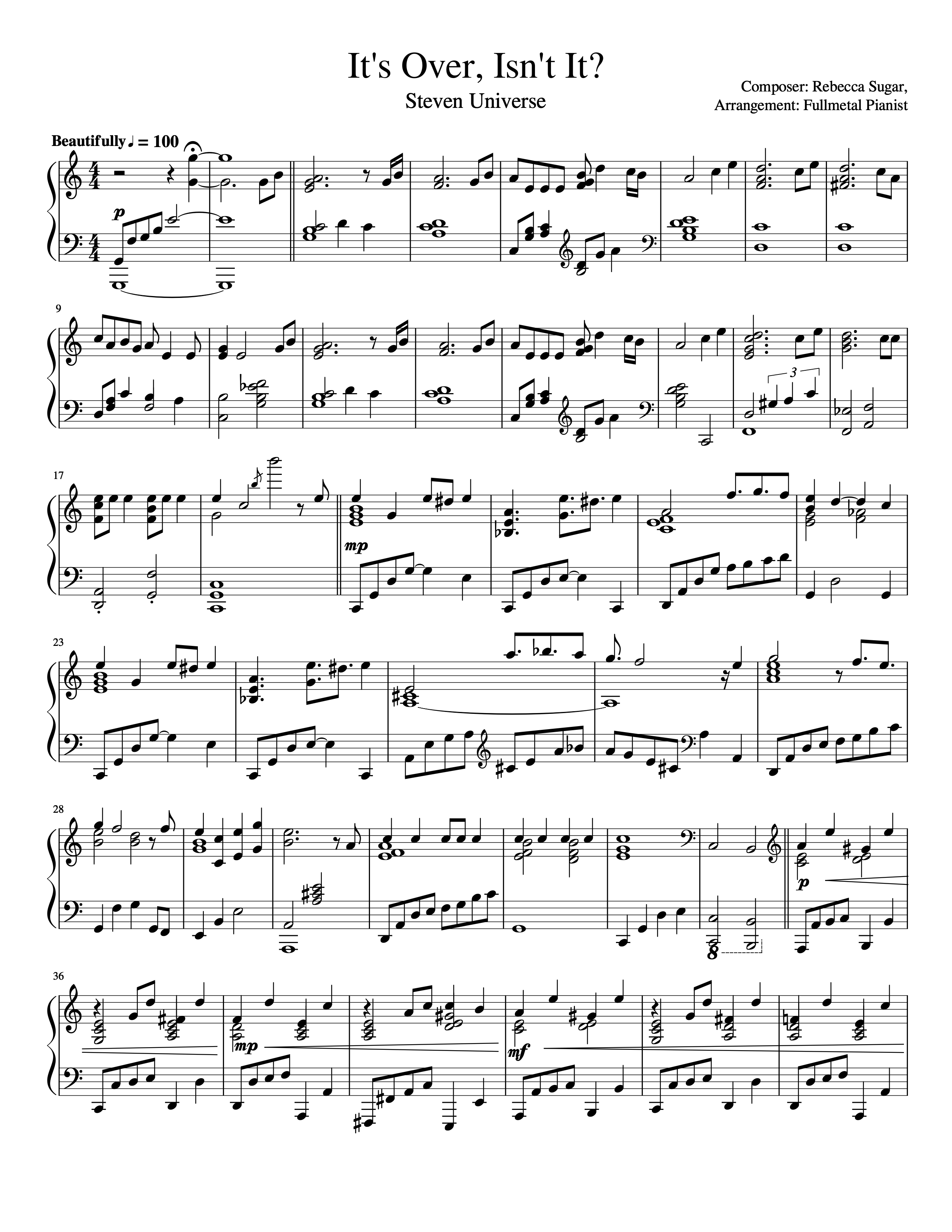 It's Over, Isn't It? Steven Universe sheet music Sheethost