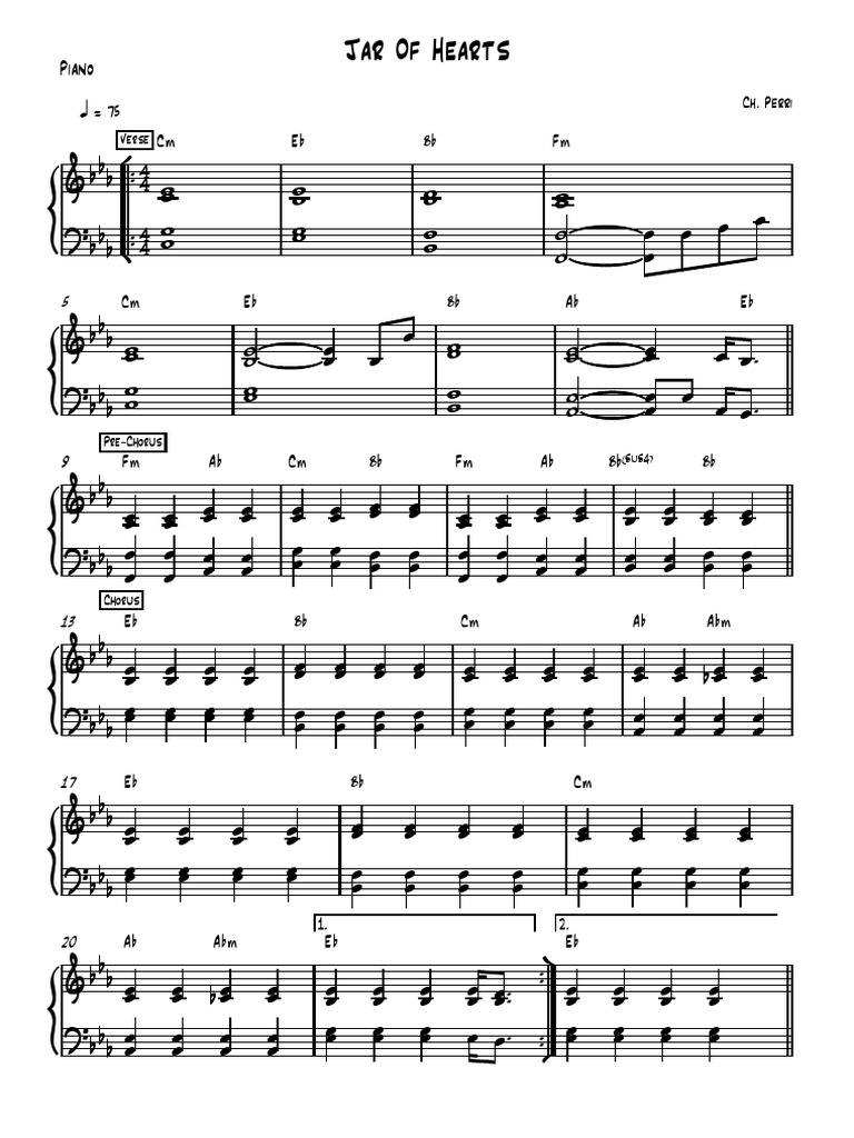 Jar Of Hearts Piano Sheet Music - 2 parts • 8 pages • 02:41 • aug 23, 2021 • 124 views.