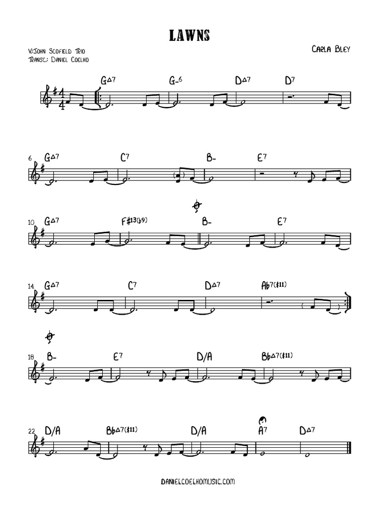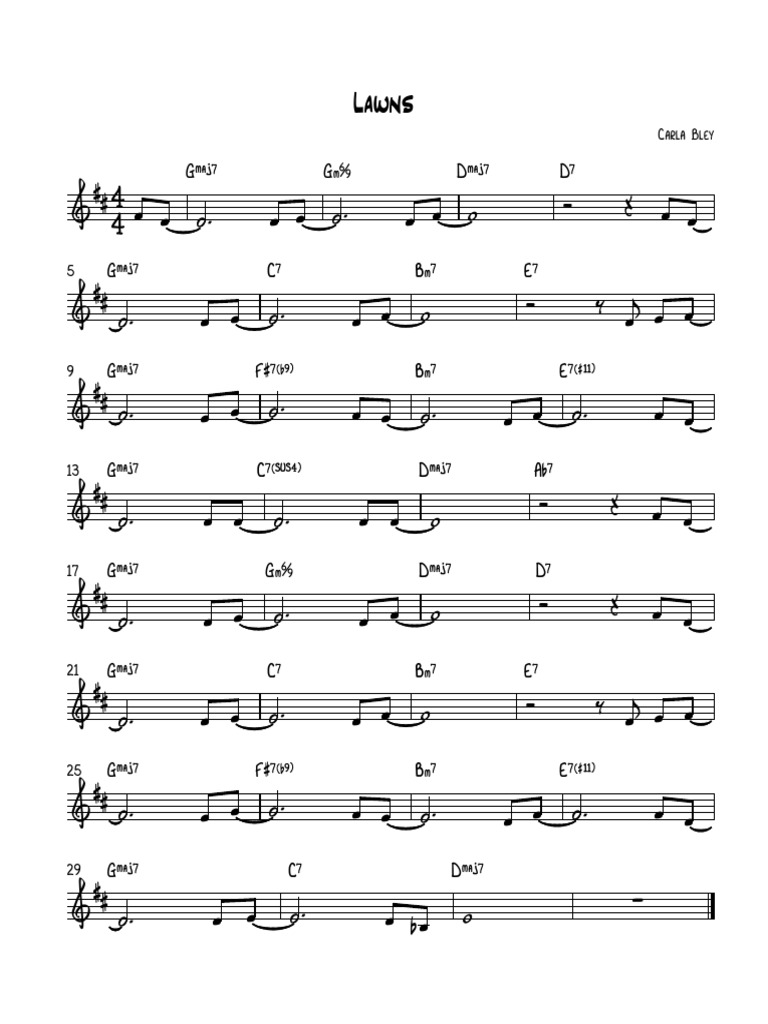 Lawns Carla Bley Sheet Music - 1 part • 1 page • 01:04 • feb 01, 2022 • 2,415 views • 6 favorites.