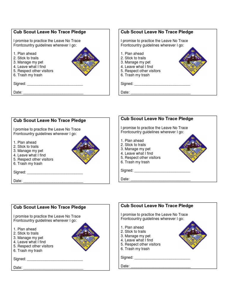 Leave No Trace Pledge Card Scouting And Guiding Social Movements
