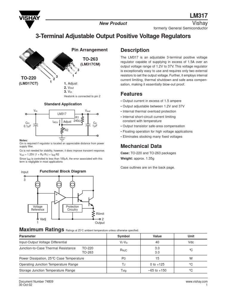 (PDF) LM317 Datasheet Adjustable Voltage Regulator