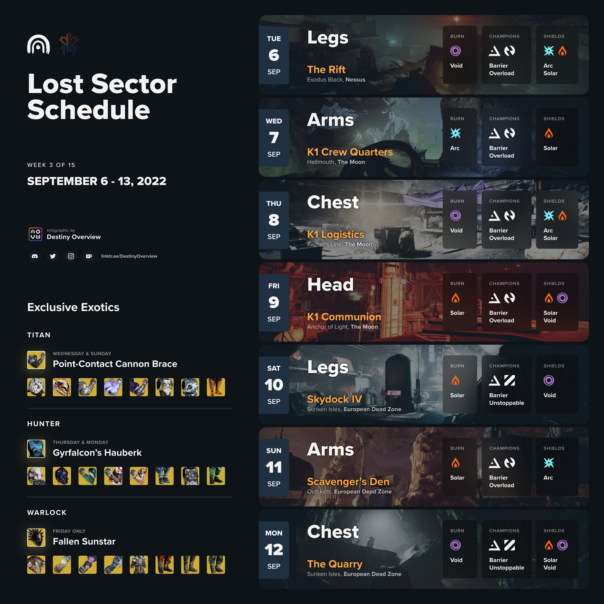 Destiny Overview on Twitter "Lost Sector Schedule returns with this