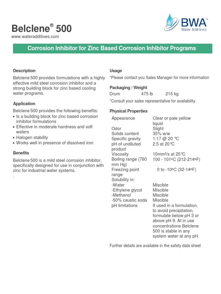 Belclene 500 Technical Data Sheet IWT 8.5x11 Corrosion Chemistry