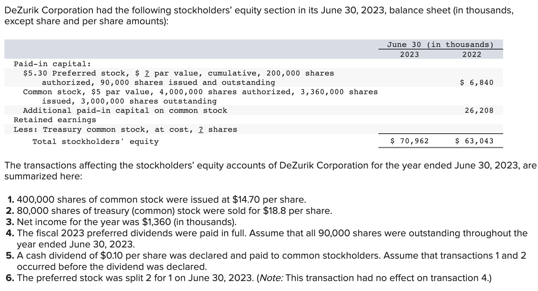 Solved Stockholders' Equity Transactions and Balance Sheet
