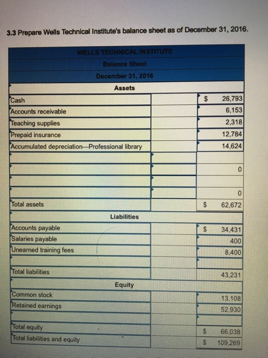 Solved 3.3 Prepare Wells Technical Institute's balance sheet