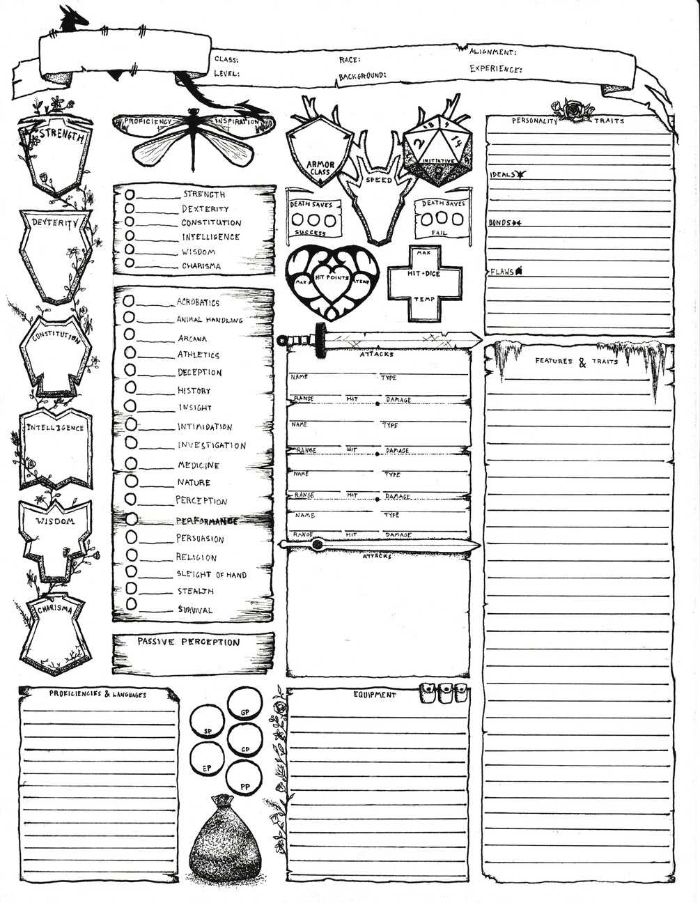 Easy Character Sheet for Dd 5e on Plain Paper Max Thardissen