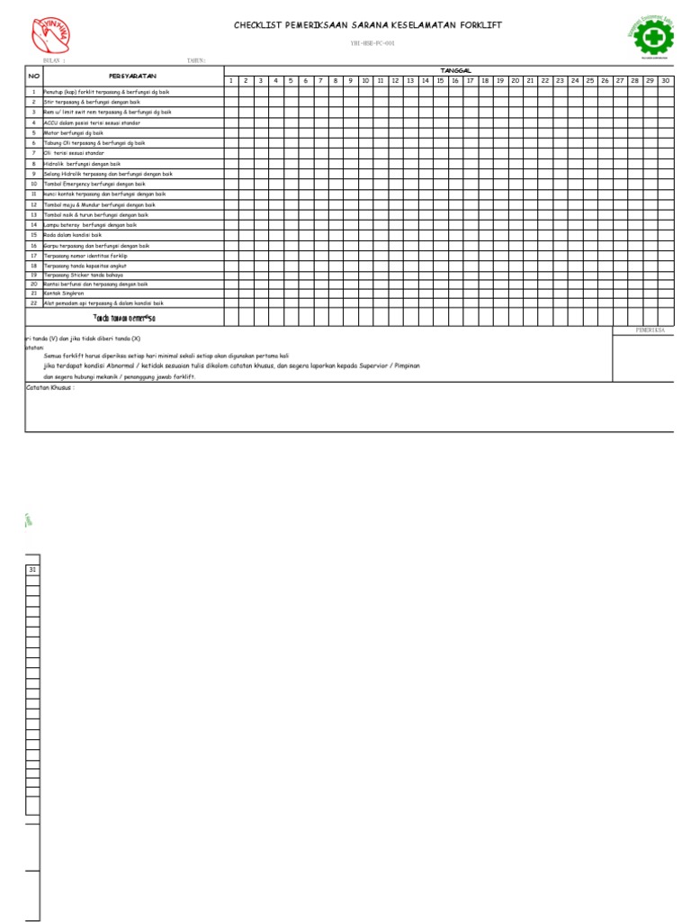 Web Download Free Forklift Lists Including Forklift Inspection Checklist, Forklift.