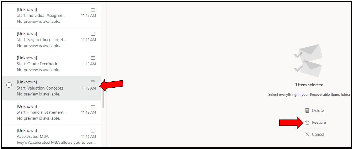 How to recover Calendar Items in Office 365.