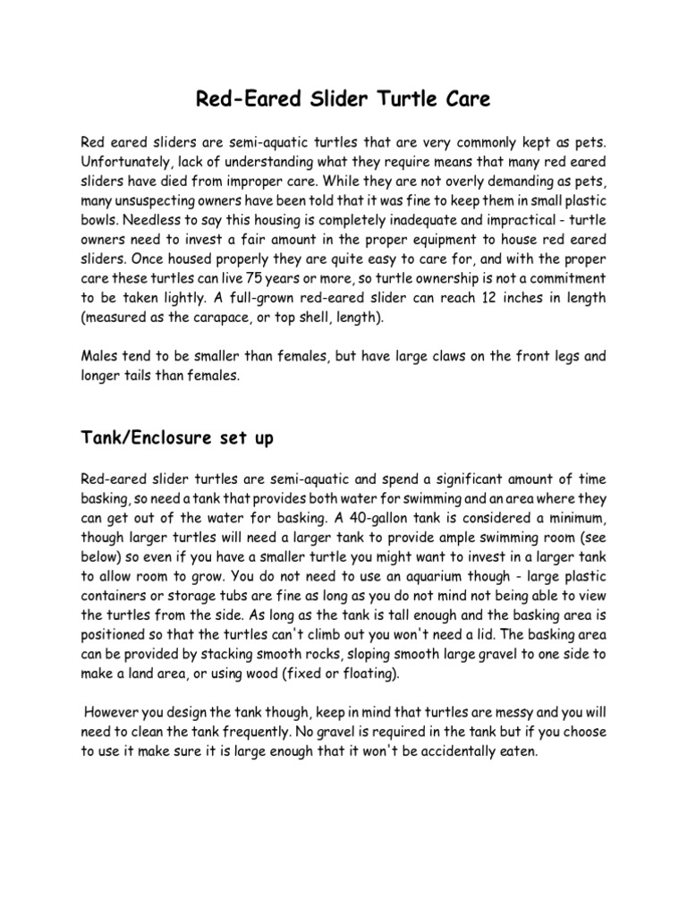 Red Eared Turtle Care Sheet