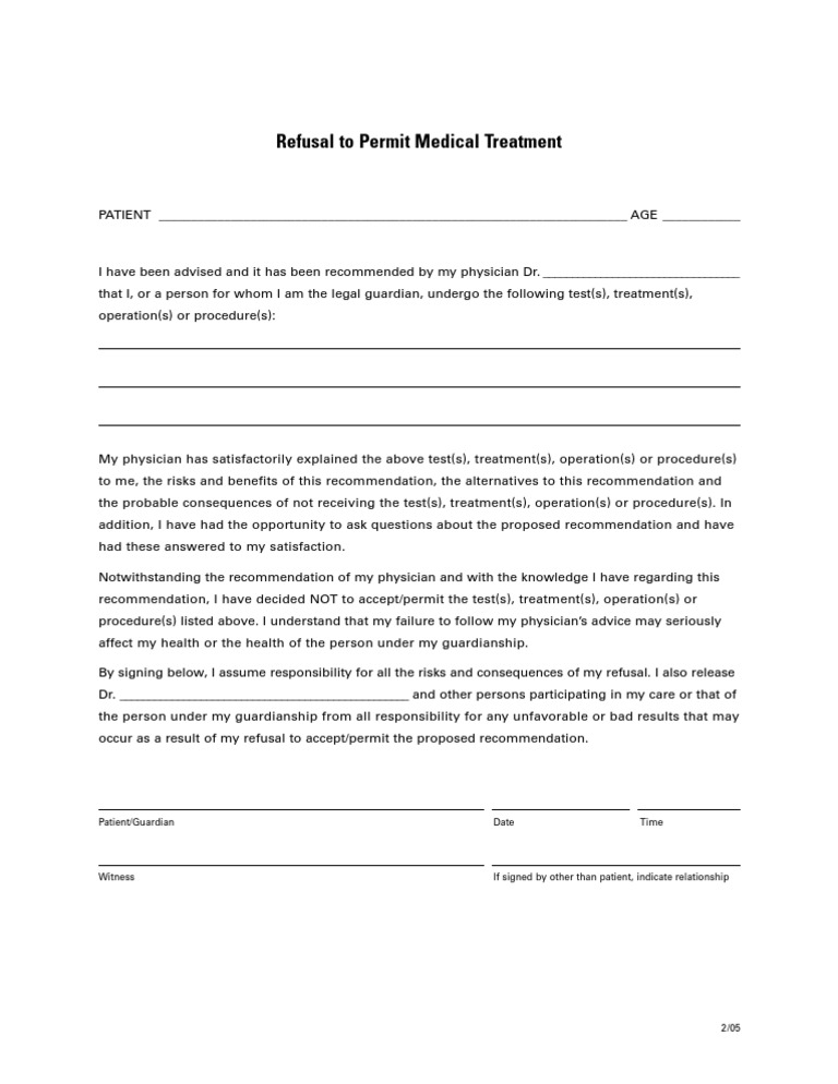 It is the disclosure of appropriate information to a patient who is permitted. Ad register and subscribe now to work on your atlas refusal of medical treatment form. Web refusal of treatment form patient name: (see our sample form “refusal to.