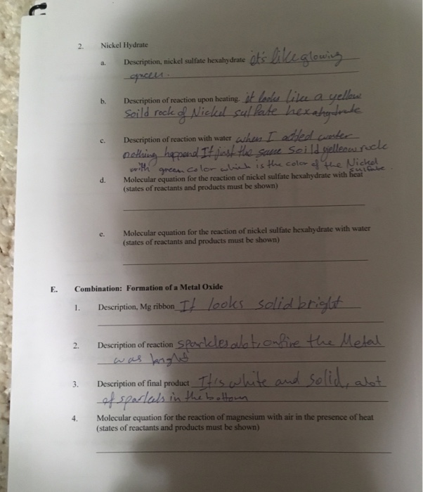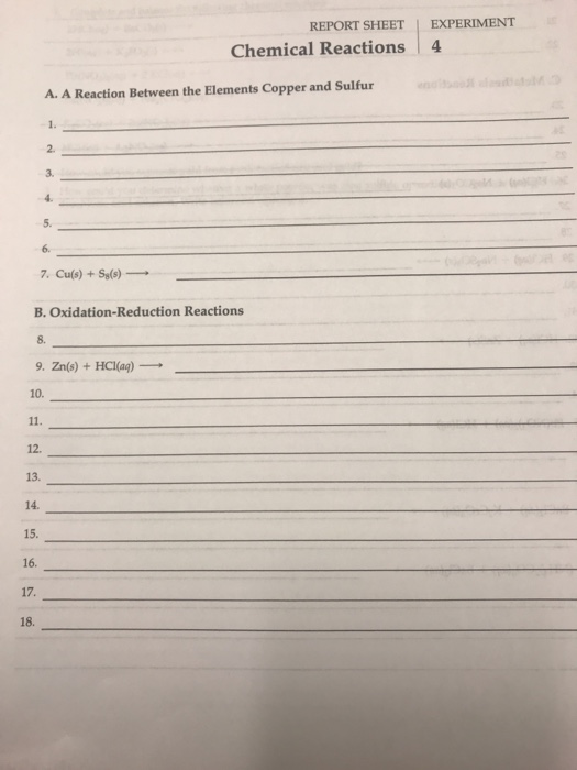 Solved Chemical Reactions and Equations Report Sheet Lab